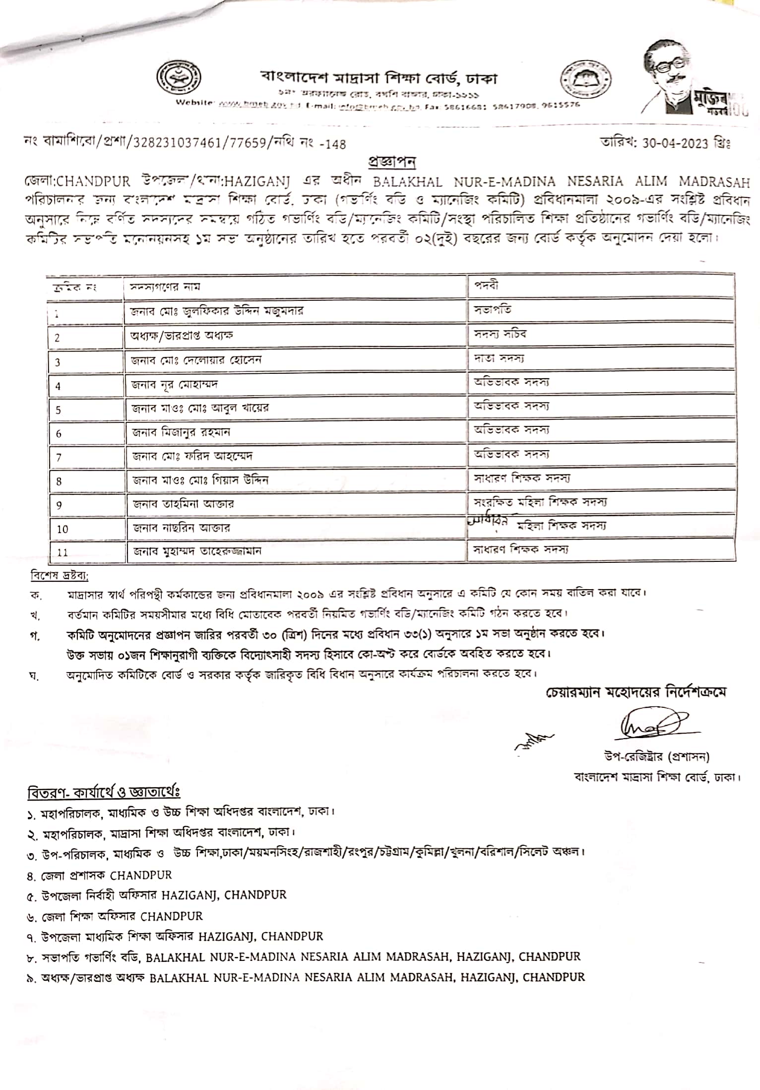 গভার্নিং বডি ও ম্যানেজিং কমিটির তথ্য